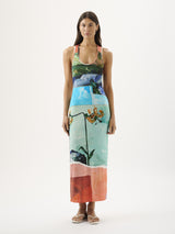 Discover the Phoenix Dress in the bespoke Wonderland print, an update on our bestselling Theodore Dress. Featuring a scoop neckline and racerback, the Phoenix Dress is crafted to flatter while effortlessly draping over the body. Style with sandals for a relaxed look or elevate with heels and fine jewellery for an elegant occasion. Please note print placement is individual and unique to each piece.