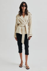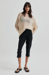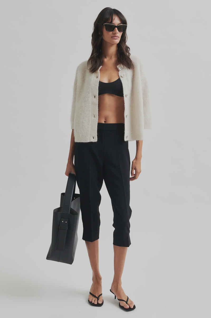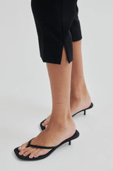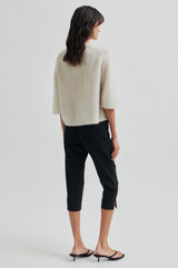 Second Female capri pants. The capri pants are made in soft and drapy fabric with tonal stitching. Featuring a concealed hook, button and zip fastening. No pockets for clean look. Regular fit with tapered leg.